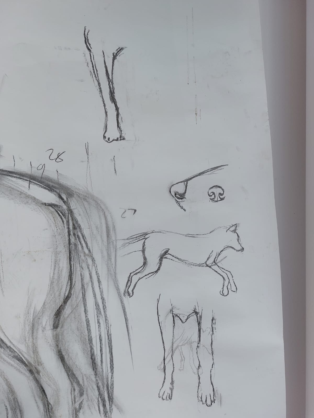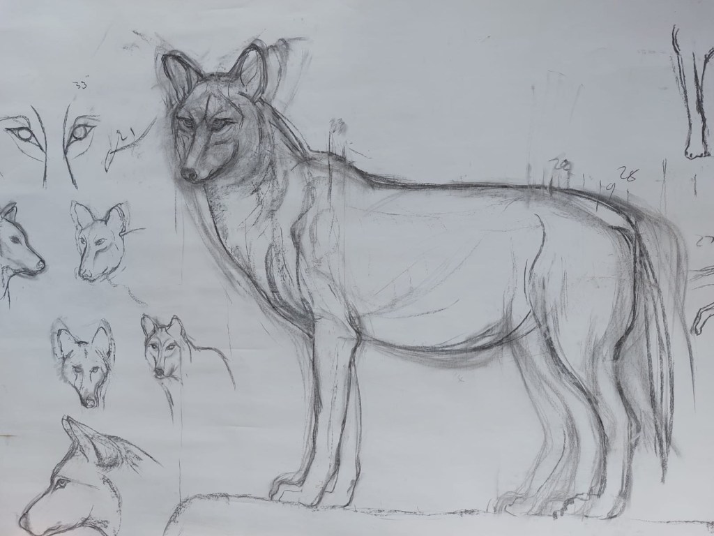 To make the wolf, as with most of my sculptures it was necessary to observe the animals, their stance and their expression. I visited the Highland Wildlife Park, watched films and documentaries and studied still images in books and online. With an understanding of wolf anatomy along with the essential process of drawing and the intimate knowledge of my immense scrap pile, I set about creating the Kingussie Wolf.